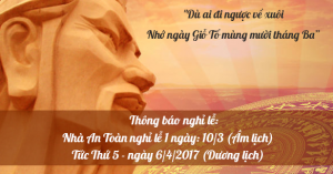 Nghỉ lễ Giỗ tổ Hùng Vương 10/3 âm lịch (6/4/2017)
